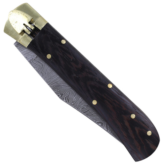 Dark Wood Lullaby Damascus Automatic Switchblade Lever Lock Knife