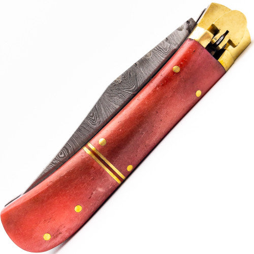 Cinnamon and Cayenne Damascus Automatic Switchblade Lever Lock Knife