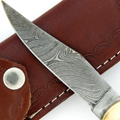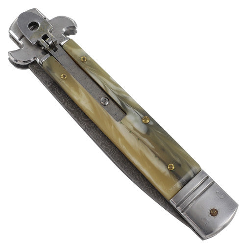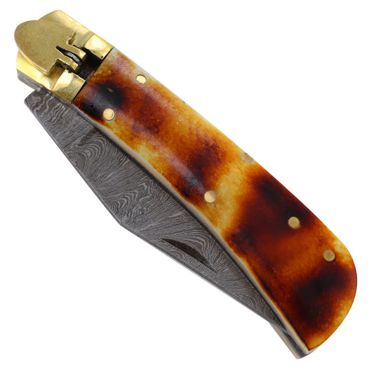 Bone and Damascus Automatic Switchblade Lever Lock Knife