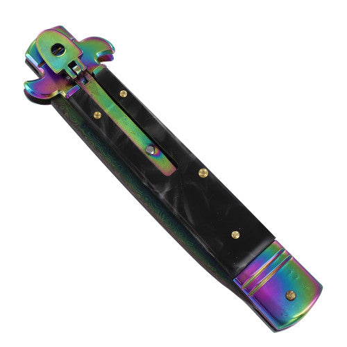 Psychedelic Madness Automatic Damascus Lever Lock Knife