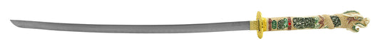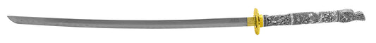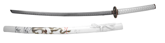 Samurai Sword with Detailed Dragon Handle in Black and White - Red